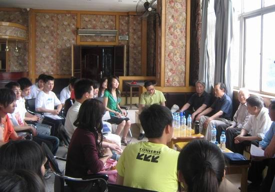5月25日下午,我院“关心下一代工作委员会”常务副主任黄新、副主任来作华、秘书长白济民、委员葛长雄、刘玉宗等一行5人,到东校区旅游系,与该系08、09级20余名学生代表就“关爱生命、重视安全”的主题进行了深入交流与座谈。院离退休工作处党总支书记陈广先、旅游系辅导员王忠伟参加了座谈会。