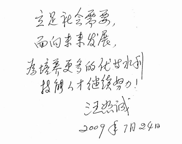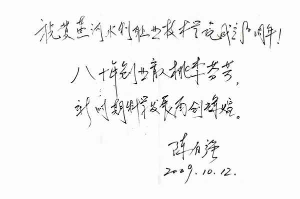 全国政协副主席、水利部原部长钱正英为学院校庆题词