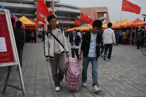 学院在火车站和汽车西站分别设立了新生接待站,多辆迎新客车第一时间为报到的学子们服务。在学院大门口,大红色的迎新拱门和随风飘扬的迎新条幅汇成了热烈的气氛,使来自各地的学子们感受到了家的温暖。校园里的礼仪引导员整装待发,新生一下迎新客车,马上就有志愿者上前引导,前去报到注册、交费、领取公寓用品。