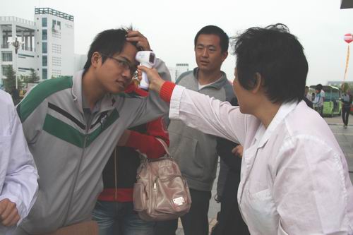 为做好迎新期间甲型H1N1流感防控工作,确保全院师生的健康,我院医务所专门在火车站、汽车西站和学院大门设立了迎新医疗站,为每位到来的新生进行体温检测,做好甲型H1N1流感的预诊排查。