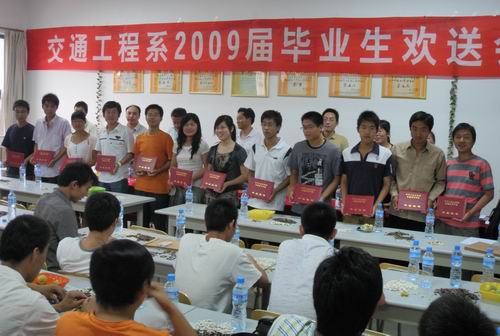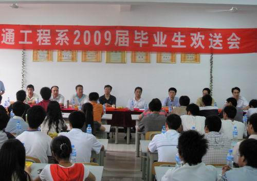612,交通工程系在3号实训楼会议室举办了2009届毕业生欢送会,院党委副书记王卫东出席欢送会,院学生处副处长李响、交通系党总支书记孙田星、系主任务新超、副主任田万涛、副书记杜广平及全体教师和学生代表近200人参加了会议,欢送会由系学生工作办公室主任焦东良主持。