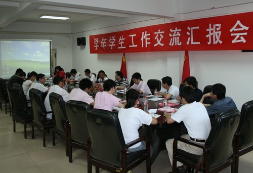 随后,各系(部)分别就一年来的学生工作进行交流汇报。汇报通过幻灯片的形式从学生思想教育、学生资助工作等方面总结了年度的工作成绩,介绍了本系(部)的学生工作经验,并就本系学生工作的特色亮点进行了阐述。汇报结束后,与会的系(部)代表对各系(部)的学生工作进行了互评。