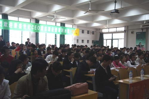在同学们热烈的掌声中,戴志康先生以“激励青春梦想,唤醒心中勇气,做自己的行动巨人”为主题开始了演讲,他向同学们讲述了他从平凡到辉煌的点点滴滴,讲述了他年少追梦的辛苦历程。同时他也结合了自己的创业经验就如何写出精彩的自荐书、如何在职场谋发展空间,给同学们提出了宝贵的意见。戴志康先生幽默风趣的语言博得了现场一次又一次的热烈掌声,最后,戴志康先生希望所有同学都能珍惜眼前的每一天,主动积极的生活,刻苦学习,认真实践,按照自己既定的人生目标努力奋斗。