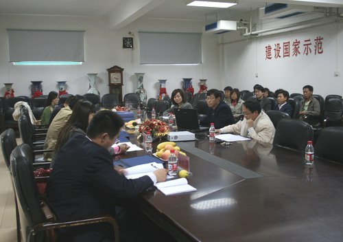 会上,王书记首先代表学院对考察组一行表示欢迎,并向考察组成员介绍了我院的学校概况、历史沿革、院系设置、招生就业等各方面情况,尤其对我院示范性建设进行了阐述。之后,院团委书记周志琦针对此次互观互检内容,就我院共青团工作向考察组作了详细介绍。介绍内容涉及服务大学生就业创业、建立青年就业创业见习基地工作、省委青年工作会议精神传达落实情况、稳定机制建设情况、“挑战杯”活动开展情况、大学生素质拓展计划实施情况六个方面。