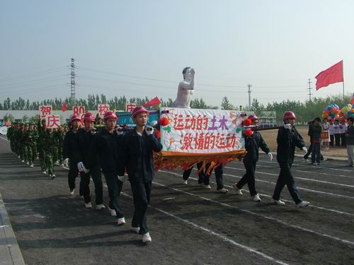 伴随着激昂欢快的运动员进行曲,全院13个系部代表队在我院国旗护卫队带领下,迈着整齐有序的步伐相继入场。他们铿锵的脚步、嘹亮的口号都显示出了我院学子朝气蓬勃、奋发向上、团结拼搏的良好的精神面貌。其中学院国旗护卫队的威武身姿,土木系代表队别具一格的运动雕塑,管理系代表队亮丽的女生方队,成为了开幕式上耀眼的风景。财经系用自制的蛋糕模型和飞翔的鸽子,表达了对母校80周年校庆的祝福和对我院美好前景的展望。