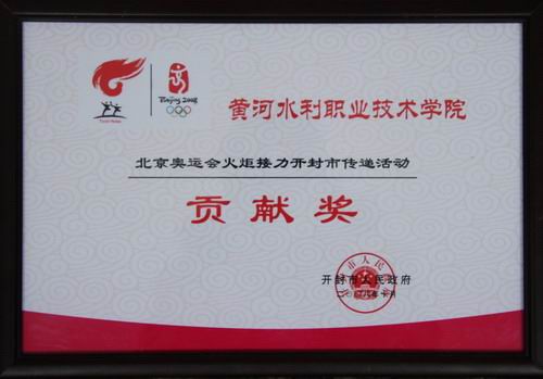 近日,我院荣获开封市人民政府颁发的“北京奥运会火炬接力开封市传递活动贡献奖”。我院杨士恒、周志琦二位同志因组织成绩突出,获得开封市政府的表彰。
