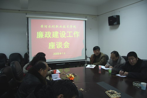 座谈会上,党委副书记、纪委书记王卫东对我院近两年廉政建设工作取得的成绩做了回顾。他说,自2003年以来,我院进行的新校区建设和师生公寓建设,无论从建筑规划、工程质量、工程规模和效益上讲,都做到了多、快、好、省、廉,相比过去是有很大提高的。新校区的建设推动了学院各项事业的发展,大大提高了学院的知名度,深受上级领导、兄弟院校和社会各界的好评。在“示范性高职院校”建设中,我院投入了5000多万元购置教学设备,各承办部门从论证、报告、审批、谈判、协议,到考察、采购、验收等环节,在公开、公正、公平的原则下,严格执行招投标管理办法,严格按程序办事,自觉接受纪检监督,实行阳光作业,千方百计为学院节省资金,保证设备按“示范性”建设进度计划采购到位,没有发生一件采购质量事故和违纪案件。
