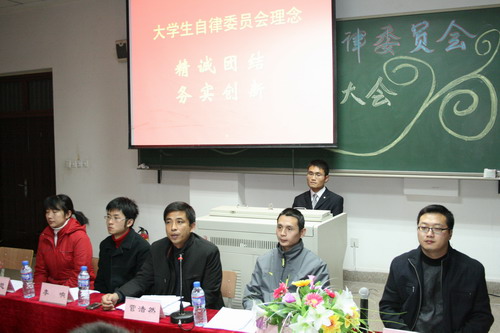 1127下午,黄河水院大学生自律委员会2008年聘任大会在教学楼6101召开。学生处处长菅浩然、副处长朱焕立、李响、学生管理科科长马晓慧、宿管科科长兼院自律委员会秘书长柴杉出席了会议,院自律会的主要学生干部及新聘任的学生干部参加了本次会议。