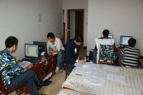 在经过紧张的一个多月的外业测绘工作之后,我院测绘突击队全面转入内业阶段,这一阶段的任务更加繁重,工作更为艰苦。据粗略计算,完成2400余户的地籍调查表的录入和宗地图的绘制工作大约需要计算机满负荷工作约九十余小时。全部成果约24000余页,打印完毕约需要六十余小时,突击队员们深知任务繁重,专门挑选了十五个计算机操作熟练的同学昼夜不停的工作。目前,已完成六个村的成果打印及装订工作。