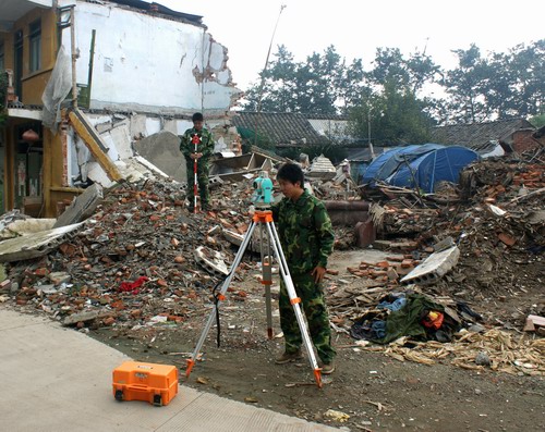 为了尽快为灾民重建家园,保证灾民不在临时安置房过冬,本次地籍测量任务要在10月中旬左右完成。本次测量我们共投入了6台套GPS全球定位系统、15套全站仪、18台计算机等价值100多万元的测量仪器设备。而且我院和四川水院的同学们克服语言不通,环境不熟悉,GPS点位发生位移等等多种困难,在技术上互相学习,在生活上互相照顾,同心协力的为灾区人民能更快的恢复幸福家园而努力。