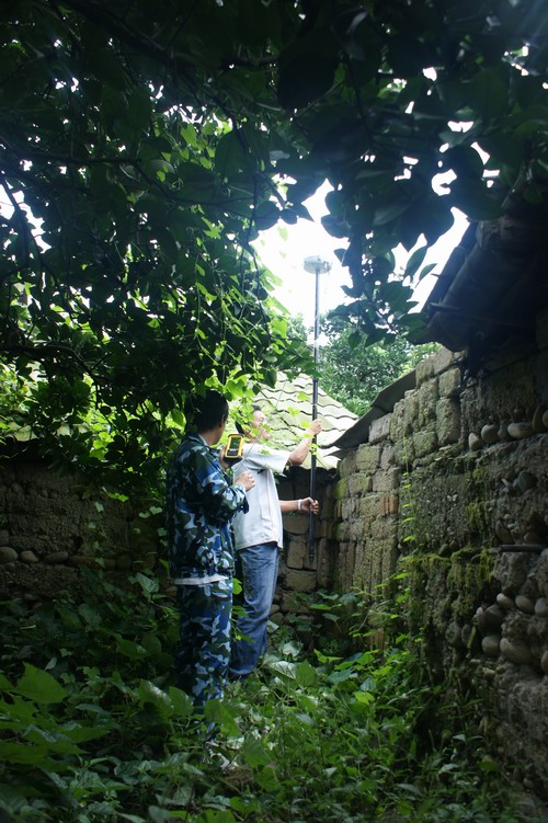 填写地籍调查表时需要挨家挨户的询问,并要查阅户口本、身份证、集体土地使用证等相关证明文件,语言沟通不流畅给我们造成了一定的困难。这里的农村居民点比我们想象的要复杂的多,灾民居住分散,许多灾民房前屋后都有一片茂密的竹林林盘,弯弯曲曲,绵延数百米,找条小路都是问题,脚下的路坑坑洼洼,每走一步都很艰难。黑压压的蚊子也时常纠缠着我们,在耳边嗡嗡作响;随处可见蜘蛛网上面趴着的花蜘蛛,灾民说这种花蜘蛛有很大的毒性,因此我们在工作中要格外小心才行。