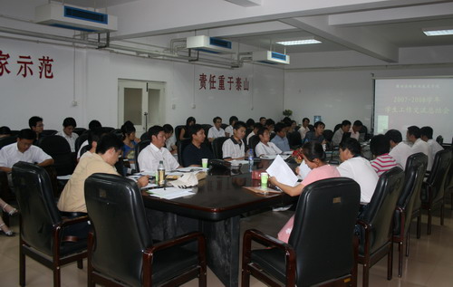 最后,王书记做了总结讲话。他充分肯定了过去一学年学生工作所取得的成果,希望大家能继续努力,把学生工作做好,使其成为我院示范性院校建设的亮点。王书记强调目前学生工作的重点是做好毕业生离校的相关工作,希望各系部本着“以人为本”的理念,为毕业生提供优质服务,确保毕业生离校工作的顺利开展。