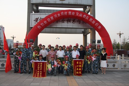 党委书记、院长刘宪亮对他们所做的工作给予了高度评价,并代表院党委、院行政及全院16000名师生员工向突击队员表示热烈的欢迎和崇高的敬意!刘书记说,512四川汶川大地震发生后,我院抗震救灾志愿突击队员积极响应号召,主动请战,率先垂范,舍小家顾大家,克服余震不断、山高路险、连日降雨、山体滑坡等重重困难,日夜兼程奔赴灾区抗震救灾。经过20天的顽强拼搏,连续作战,今天圆满完成了各项支援任务,满载当地政府和人民群众的高度赞扬平安而归。突击队充分发扬了水院人“特别能吃苦、特别能战斗、特别能奉献”的无私精神,为抗震救灾做出了积极的贡献,是一支关键时刻冲得上、困难面前不退缩的集体!是一支敢打硬仗、善打胜仗的集体!是一支完全值得黄河水院人高度信赖的集体!刘书记希望全体突击队员能尽快调整心理,好好保养身体,及早恢复体能,继续大力发扬抗震救灾的伟大精神。