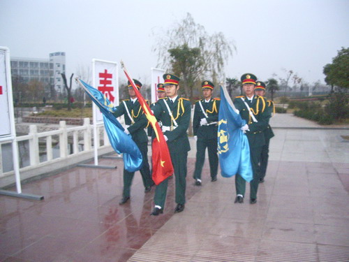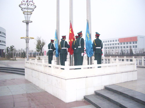 2008年1月1日早晨七点,我院国旗护卫队,迎着2008年第一天的旭日,迈着雄壮的步伐来到广场,在雄伟的国歌声中,将国旗和我院校旗冉冉升起。同学们注视着五星红旗和学院校旗,祝愿我们的祖国更加繁荣富强,祝愿我们的学院更加美好。
