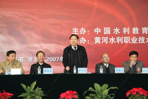 水利部人士劳动教育司巡视员、中国水利教育协会副会长陈自强在开幕式上讲话。他说,水利是国民经济的基础产业,在落实科学发展观构建和谐社会的进程中,水利工作者的使命更光荣、责任更重大。科技兴水,人才为本,为了进一步提高水利工作者队伍素质,水利部党组织提出了加强“四支队伍”建设的战略布局,把高技能人才队伍建设放在了重要的地位,水利高职院校是高技能人才培养的主要基地。为了在各水利高职院校之间搭建相互交流的平台,展示近年来水利高职院校改革发展的丰硕成果,中国水利教育协会决定主办这次技能大赛。希望通过这次大赛,能进一步激发水利院校学生培养技能的积极性和热情,推动水利高职教育教学模式的改革,促进水利职工的队伍建设。