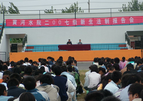 9月27日上午,学生处邀请河南省开封市人民警察学校教务处主任、一级警督李书芳在西田径场为我院2007级新生做了一场法制报告。李警官从当代大学生法制观念的现状、出现问题的原因以及如何促进法制观念的提高三个方面进行了讲解。