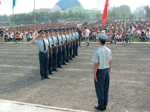 会议结束后,2007级新生在军训教官的带领下开始了为期10天的紧张军训生活。