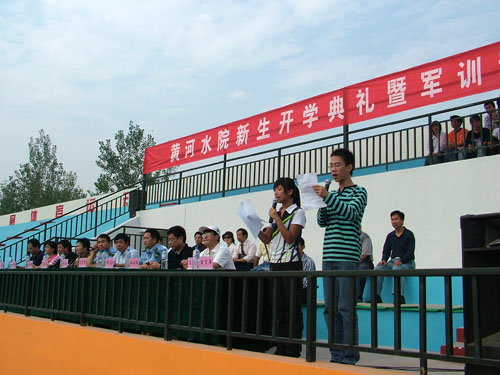 典礼在雄壮的国歌声中开幕。院长刘宪亮作了重要讲话。驻汴某部首长代表军训教官作了讲话。新生代表财经系宋晓萌同学、测绘系郭强同学也在大会上作了发言。学生处副处长朱焕立布置了军训工作安排。