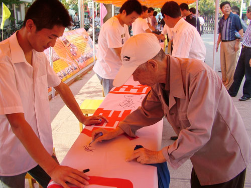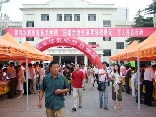 会议结束以后,全院教师参加了在老行政楼前举办的“黄河水院国家示范性高职院校建设万人签名活动”。