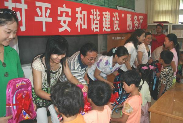 志愿服务团首先向开封县城关镇范庄的贫困学生捐赠了书包文具、生活用品等。范庄村委会主任对我院的关怀与帮助表达了深深的谢意:“你们不仅为我们送来了学习文具,更送来了人间真情,社会关爱和美好祝愿!”