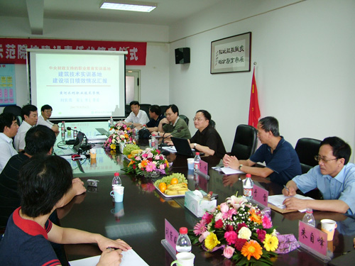 8月6日,以上海市教科院职成教所所长、高职教育发展研究中心主任马树超为组长,范悦、包建明、于雷三位专家组成的教育部实训基地建设检查组莅临我院,对中央财政支持的我院建筑技术实训基地的建设情况进行检查。省教育厅杨德亮、朱自峰、张大策等陪同检查。