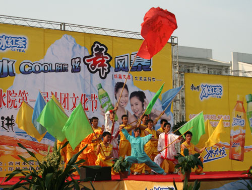 土木工程系武术协会的《武魂》,刚劲有力,气势威武;财经系青年志愿者协会的《印度风情舞》,婀娜多姿,妩媚动人;测绘工程系青年志愿者协会的《金孔雀》,配着悠扬的葫芦丝,一群“金孔雀”翩翩起舞,让观众领略了少数民族的风俗民情;大学生服务社的手语表演《订做一个天堂》,宁静优雅,感动人心,向大家传递了人间的真情与真爱。交谊舞表演、健美操、轮滑表演等都不断点燃着观众的热情,掌声、喝彩声此起彼伏,高潮迭起。在《祖国我慈祥的母亲》的高亢旋律中,演出圆满落幕。