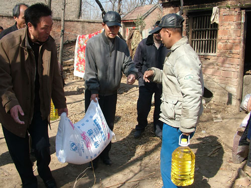 2月9日上午,张书记一行首先来到杞县葛岗镇楚中村,在村镇干部以及驻村工作队员的陪同下,张书记一行走访了13户特困家庭和经济困难家庭,了解他们的生产和生活情况,并为每户群众送上1袋面粉和2壶食用油,以帮助他们度过难关,过一个温暖、祥和的春节。10日上午,张书记一行又来到通许县厉庄乡靳岗村,走访了15户特困家庭和经济困难家庭,为每个家庭送上面粉和食用油,并了解他们的生产和生活情况。同时,还将我院教职工捐赠的1500余件衣物送到该村村委会,委托村委会将衣物发给特困家庭和经济困难家庭。