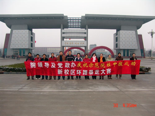 1230下午4时,党政办举行院领导和办公室成员“庆祝示范院校申报成功”新校区环路行走健身活动。学院党委副书记、工会主席张惠贞及党政办全体成员参加活动并签名留念。健身活动气氛非常,表达了同志们无比喜悦的心情,和对学院未来的冀望与美好憧憬。