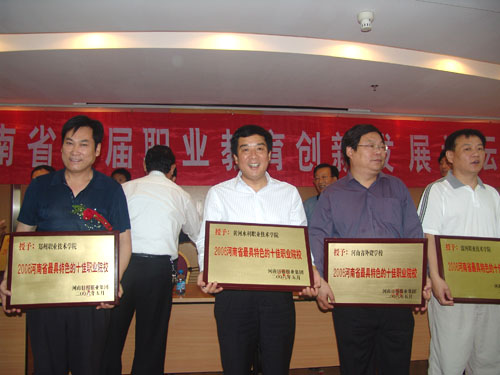 5月26日上午,河南报业集团组织的2006年河南省首届职业教育创新发展论坛大会在报业集团新闻发布中心举行。大会宣布了河南省最具特色的十佳职业院校评选结果,我院荣获“河南省最具特色的十佳职业院校”之首。我院院长刘宪亮应邀在大会上做了《铸精品创名牌,实现历史性的跨越》的专题发言,受到了与会代表的高度评价。