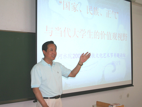 艺术节期间,校园内周周有讲座,同学们天天受教育。马列学科专业带头人胡引生副教授的《国家、民族、正气与当代大学生的价值观视野》讲座,纪委书记王卫东副教授的《我国的水土流失与水土保持》讲座,水利系副主任焦爱萍副教授的《水利工程对生态影响问题的思考》讲座,管理系党总支书记何聚坤副教授的《人生成功的九大智慧》讲座等,每场讲座都吸引了很多同学。各位老师的讲解深入浅出,引经据典,联系实际,生动幽默。不仅丰富了同学们的业余文化生活,而且提高了同学们的科学文化素养,激发了同学们爱党、爱国、爱校情怀。