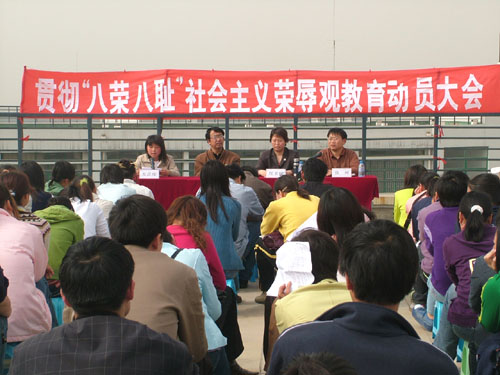 另外,水利系也在4月20日下午举行了“八荣八耻”宣传教育动员大会。成教学院于4月19日下午举办了贯彻“八荣八耻”精神演讲比赛。