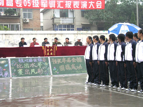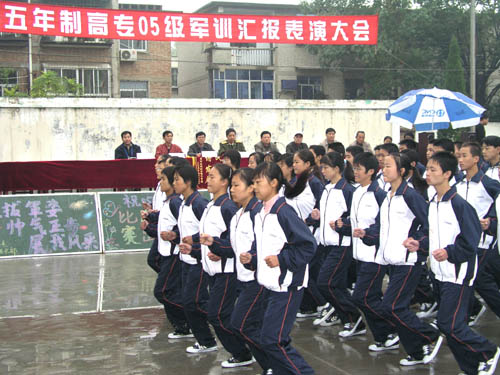 9月29日上午,细雨蒙蒙,我院基础部五年制05级新生军训汇演在西南校区操场上隆重举行。出席大会的有主抓学生工作的院领导王卫东,驻汴某部队政委,基础部党总支书记李文丰,院学生处副处长于兆国等。大会由基础部党总支副书记刘岩主持。