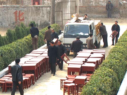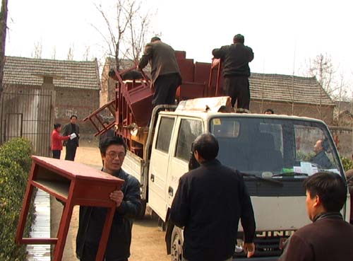 3月9日上午,组织部长张予东和“联乡驻村帮扶”工作队员刘卫锋、蒋守军、樊建科一起,安全护送50套新桌凳和5张办公桌至尉氏县白潭村,并赠与白潭村小学和村委。望着两排崭新的桌凳,白潭村小学师生及村镇干群心花怒放,盛赞我院做了一件实事、好事。