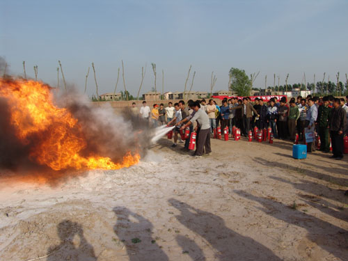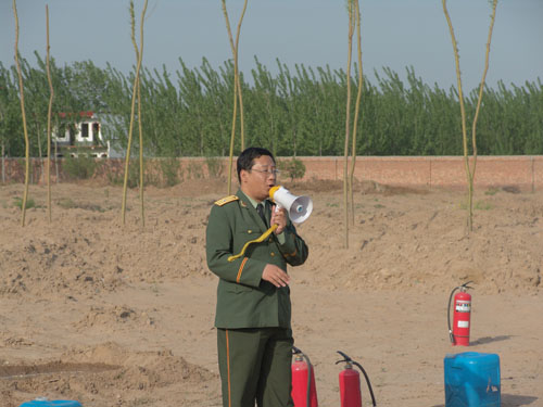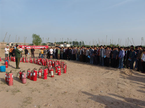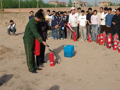 4月21日下午,我院在新校区举行2005年消防演习,部分师生员工参加。为配合演习,保卫处邀请开封市消防支队的同志一行四人在现场进行指导,给我愿师生员工讲授消防知识及火灾逃生方法,演示如何使用干粉灭火器。