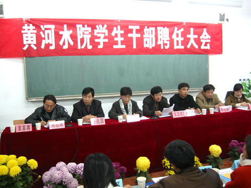 团委书记菅瑞卿宣布了学生干部的聘任决定,学生处处长刘紫婷给学生干部提出了希望和要求。随后,水利系学生会主席郝志邦和本次聘任的院学生会主席路立功同学分别代表系部学生会和院学生会在大会上发言。