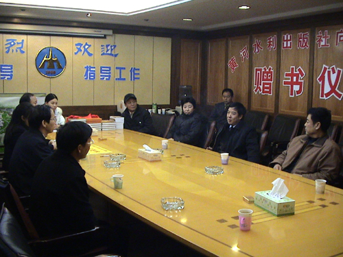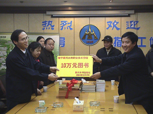11月24日上午,黄河水利出版社社长骆向新、副社长吕洪予、总编雷元静等一行8人专程从郑州来到我院,向我院图书馆捐赠了价值10万元的科技图书,以此庆贺黄河水利出版社建社10周年。学院领导刘宪亮、孙五继、王卫东以及教务处、图书馆等有关部门负责人出席了捐赠仪式。