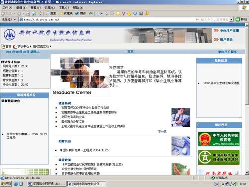 开通后的“学生就业信息网”,实现了毕业生基本信息的网上收录、查询,实现了用人单位招聘信息的即时发布,可以完成用人单位的网上招聘、签约,实现网上咨询和网上答疑。“学生就业信息网”的开通为用人单位与毕业生之间架起了一座沟通的桥梁,也标志着我院毕业生就业工作向信息化进程迈出的坚实的一步。