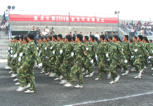 9月29日下午,我院新校区操场彩旗飘扬,2004级4500名新生经过为期15天的军事训练,在这里举行隆重的阅兵式,接受学院领导和部队首长的检阅。