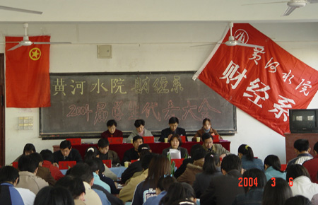 2004年3月6日上午9时,财经系2004年学代会在西北合堂三教师隆重召开。系党总支书记张玉姣、党总支副书记梁建民、系副主任张辉老师出席会议,团总支书记宋建涛和董淑芳、王斌、张福洪、李冠军等老师参加会议。院团委菅瑞卿老师到会祝贺。系总支书记张玉姣发表讲话对到会的学生代表和各位老师表示感谢和问候。并对与会代表提出要求。希望各位代表充分行使自己权力,选出真正能够服务同学的一届学生干部,也希望新一届的学生会干部充分发挥“自我教育,自我管理,自我服务”职能。做好联系师生的桥梁和纽带。
