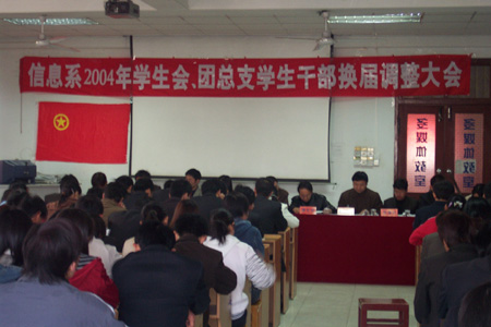 又讯。3月6日,信息工程系2004年学生会、团总支学生干部换届调整大会在系多媒体教室隆重召开。