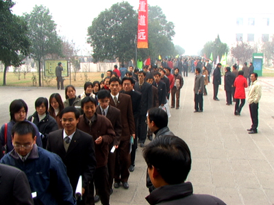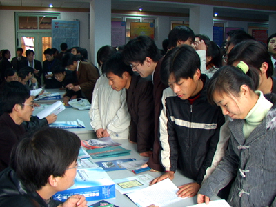从11月22日开始,全国各地的2004届毕业生专场见面洽谈会风起云涌,并且都呈现出一种新的特点:即由各地教育部门或几个高校联合出面,进行联合、分场次供需见面会,规模创历史之最。和这些联合供需见面会相比,我院2004届毕业生见面洽谈会规模也许有些逊色,但是这里的人气、这里的特色也足以让我们感到自豪。