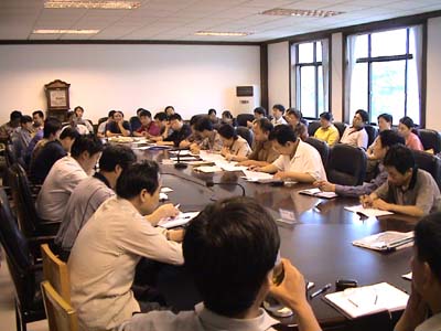 “新校区建设项目专项研究课题”工作汇报暨交流会议,于2003年6月30日下午在东院三楼会议室召开,会议由党委书记俞海洛主持,院长、指挥部指挥长刘宪亮、 副院长、副指挥长茹正波及指挥部其他成员、新校区建设办公室工作人员、新校区建设项目专项研究十一个课题组的项目主持人及全体成员参加了会议。