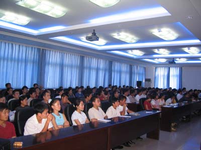 13日是我院迎新生的日子,与校园内的热闹气氛相比,综合楼学术报告厅里更称得上是一种热烈。河南省水文局高级工程师岳利军总工的专题报告引起大家的极大关注。岳利军总工程师从利用资源水利和可持续发展理论推断,我省的水资源状况不容乐观,这为我们水文工作者提出了更大的挑战。接着,他深入浅出地讲解了解决这些问题的对策。