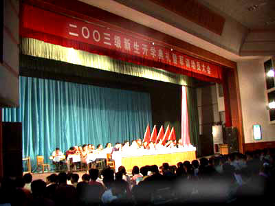 9月16日上午,我院2003级新生开学典礼暨军训动员大会在学院大礼堂举行。院领导俞海洛、刘宪亮、张惠贞、陈广义、申靖、孙五继、茹正波,负责新生军训的部队首长,学院各部门负责人出席了大会。大会由院党政办主任王卫东主持。