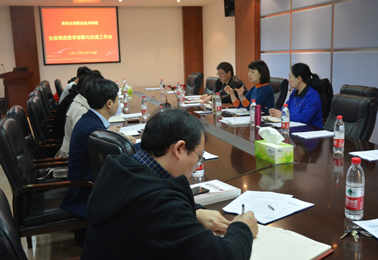 质量管理办公室主任丁爱萍通报了我校教学诊断与改进工作基础、存在的问题、推进会的目的、下一步工作计划等,重点介绍了我校教学工作诊断与改进组织机构成员组成,明确了各工作组的主要职责、任务与目标,详细讲解了标准体系和工作标准的制订原则、方法。教务处处长薛建荣解读了我校《制度建设管理办法(试行)》,讲解了工作职责制订的具体要求。