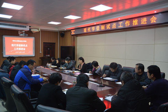2017年9月我校入选全国第二批现代学徒制试点建设单位。按照教育部要求,我校甄选水利水电建筑工程技术、电子信息工程技术、发电厂及电力系统、机械设计与制造、工程测量技术等5个专业为试点专业,各试点专业由校企共同制订切实可行的任务书,并分步实施、有序推进。本次会议针对我校现代学徒制试点开展情况进行阶段性总结,交流试点实践经验,研讨解决试点工作中存在的问题,部署下一步各项试点工作。
