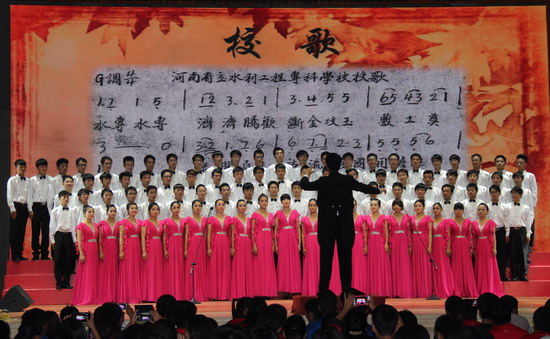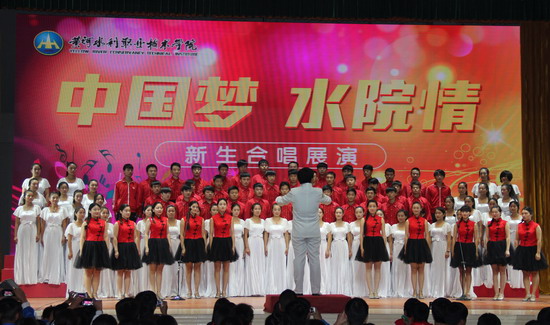 颂经典一展中国梦,唱校歌礼赞水院情。在第65个国庆节来临之际,9月26日下午,由院团委主办、艺术系承办的“中国梦 水院情”新生合唱展演在学生活动中心一楼报告厅隆重举行。院领导刘国际、茹正波、王卫东、刘紫婷、杨士恒、张豫东,刘卫锋等出席活动,学院各部门负责人、各系领导、老师及2000余名学生参加活动。