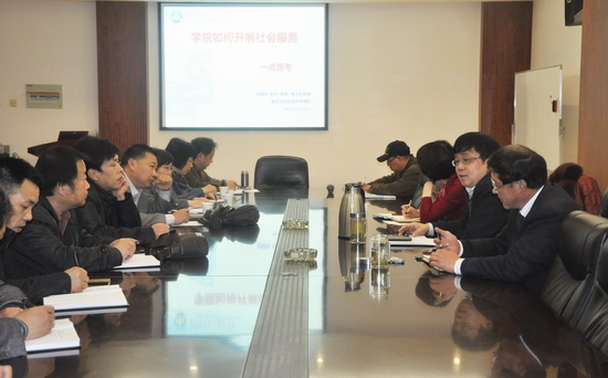 首先,刘国际院长做题为“学院如何开展社会服务”的报告。报告阐述了社会服务的定义、内涵、方式与意义,结合我院实际,提出我院开展社会服务的定位,主要是与生产企业开展技术合作开发、合作攻关,以小微型企业合作为突破口,进行生产性服务,成立小的公司或合作办校中厂;强调说明技术服务的目的是培养教师队伍、深化校企合作。刘院长指出,目前,我院在学院、系部、教师等各层面上的社会服务观念滞后、意识薄弱,学院开展社会服务的基础较差,缺乏政策、机制和氛围上的有效引导。在今后的工作中,学院将加强教职工教育和观念更新,制定相关政策引导和鼓励系部、教师开展社会服务;教师们要主动出击,自觉深入到企业和生产一线,系部主任要组织好队伍,形成团队;学院还要建设好科研平台,为教师更好地开展技术服务、技术创新与技术开发提供有效服务。