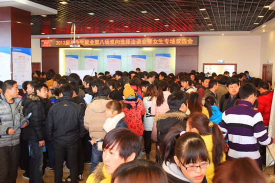 工科女生就业难是高校就业工作面临的普遍难题,为帮助未就业女生尽快解决就业问题,12月8日,我院组织举办了“2013届毕业生第八次双选会暨女生专场招聘会”。