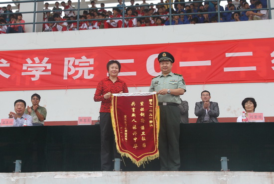 党委书记张惠贞作了军训总结讲话。她首先代表院党委、院行政向承担这次军训任务的驻汴某部的官兵们表示衷心的感谢和崇高的敬意,向出色完成军训任务的全体新生致以诚挚的慰问。张书记说,通过为期13天严格、系统的军事训练,广大新生不仅学习了军事常识,增强了国防观念、竞争与合作意识,而且培养了艰苦奋斗、勇敢顽强的军人作风,更加坚定了同学们的爱国主义信念,这必将对同学们的人生奋斗历程产生重大而深远的影响。希望同学们以这次训练为契机,将军训中表现出的坚忍不拔的精神、顽强奋斗的作风、勇往直前的气概和团结互助的精神,投入到以后的学习和生活中去,以良好心态去接受人生的挑战,奋发学习,挑起建设祖国的重担。